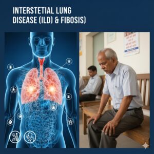 We diagnose and treat Idiopathic Pulmonary Fibrosis, a progressive condition where lung tissue becomes stiff and scarred without a known cause. Early evaluation helps slow progression and improve breathing.